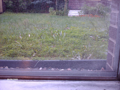 That residue on the windows is the dusting from the technician. You can't see it very well in the daylight, but I can guarantee you I won't be trying to open my blinds tonight to take pictures, so this will have to do.